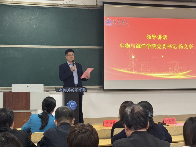 最后,杨文亭作总结讲话。他肯定了新生们的朝气与潜力,强调了大学阶段的重要性,希望新生们树立正确价值观,珍惜时光,勤学善思,积极参与实践,在生物与海洋学院的沃土上书写精彩人生篇章。