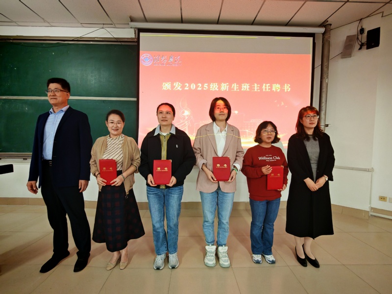 在班主任聘书颁发环节,张淑芝宣读了2025级新生班主任名单,杨文亭和许瑞瑞为班主任颁发聘书,为新生成长保驾护航。