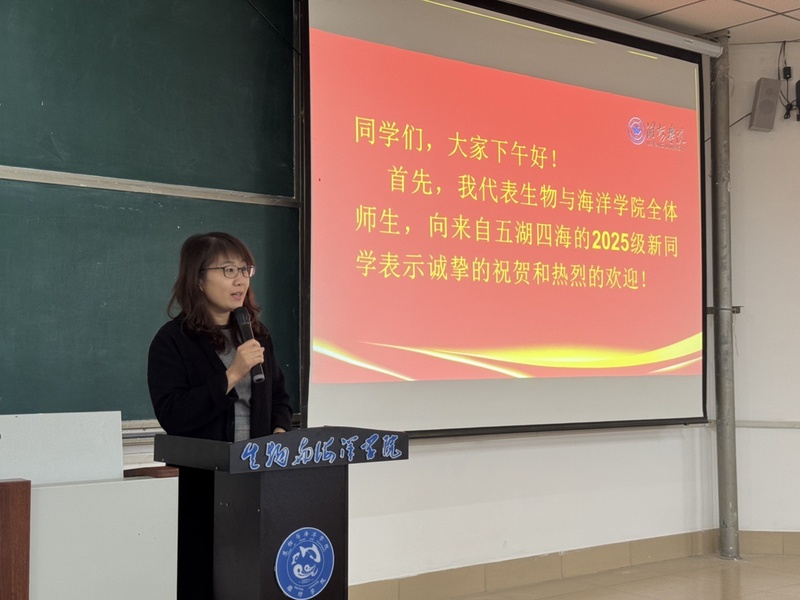 会上,许瑞瑞代表学院致欢迎辞。她详细介绍了学院的办学特色、学科优势、师资力量及发展成果,重点阐述了生物科学、生物技术、海洋渔业科学与技术、食品营养与健康四大专业的培养目标与课程体系,并向新生提出殷切期望,鼓励大家珍惜学习机会,主动探索,在学院平台上实现成长成才。