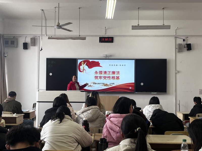 为深入推进青年学生廉洁教育,引导青年学子树立清正廉洁的价值理念,11月13日,生物与海洋学院组织开展“青春倡廉•微课堂”主题宣讲活动。学院学生党支部书记孙海燕以“永葆清正廉洁,筑牢党性根基”为题,为学院学生党员及2025年下学期入党积极分子带来了一堂生动深刻的廉洁教育课。