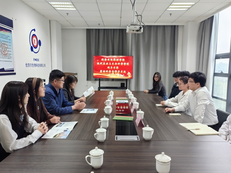 优奈尔生物是一家以科研育种为核心,集科研、育种、生产、销售于一体的现代化企业,拥有市级重点实验室和山东省院士工作站等平台。公司金炳奎博士带领师生参观了企业文化展厅和实验室,介绍公司发展情况和业务范围,然后进行了座谈交流。交流中,双方围绕学生实习、实践、就业等核心议题深入探讨,明确了校企协同培育应用型人才的合作方向,为毕业生搭建精准就业渠道。
